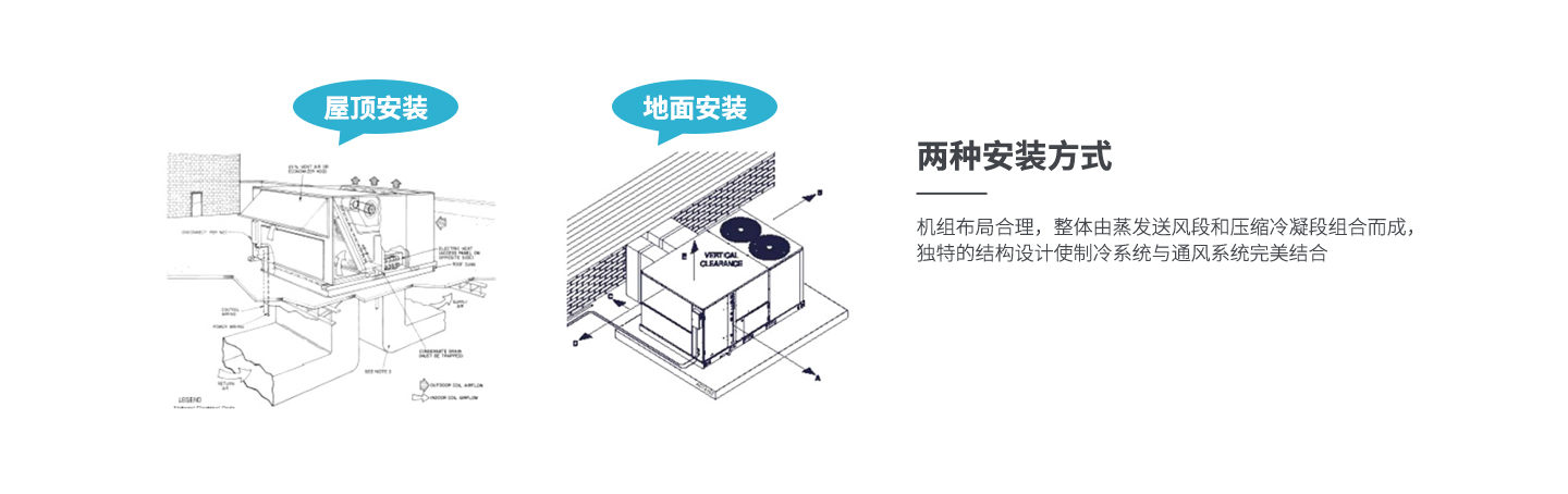 屋頂式空調機組是一種自帶冷源、風冷卻的大中型整體空調設備, 其制冷、加熱、加濕、送風、空氣凈化、電氣控制等組裝于臥式箱體中。 屋頂式空調機組可分為:單冷型、電加熱型、恒溫恒濕型、恒溫恒濕潔凈型、熱泵型等類型。 機組在結構和表面積處理上,考慮了防腐蝕、防暴曬、防暴雨等措施,可安裝在屋頂上或室外平臺上。 根據機組使用場所環境的具體要求,機組可做防爆、防腐蝕等處理措施。