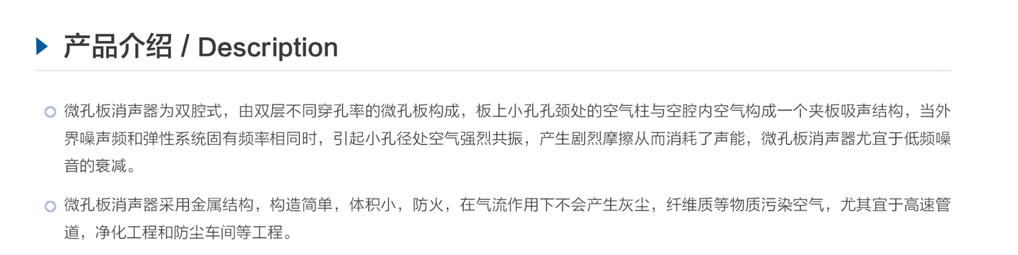 微孔板消聲器采用金屬結構,構造簡單,體積小,防火,在氣流作用下不會產生灰塵,纖維質等物質污染空氣,尤其宜于高速管道,凈化工程和防塵車間等工程。